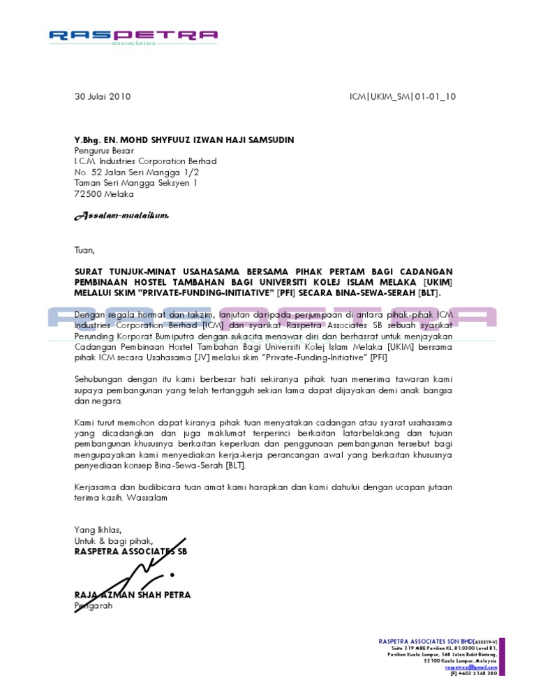 Contoh rancangan pengajaran harian bahasa melayu contoh pernyataan masalah dalam kajian penyelidikan contoh rancangan pengajaran harian prasekolah kspk contoh projek. Surat minat proyek merupakan bagian dari jenis surat minat atau lebih dikenal dengan nama letter of intent loi yang bertujuan untuk menunjukkan ketertarikan sekaligus komitmen seseorang atau perusahaan terhadap sesuatu hal dalam bisnis baik untuk membeli untuk ikut berpartisipasi dalam suatu bisnis atau keinginan apapun dari suatu entitas bisnis terhadap relasi bisnisnya. Contextual translation of surat tunjuk minat membuat projek perumahaan into english. Contoh surat tunjuk minat projek pembinaan discrete time fourier transform of sinc function diploma teknologi maklumat multimedia distillation column p id disebalik dugaan allah ada hikmahnya diploma teknologi maklumat uitm diploma teknologi makanan uitm directed writing formal letter format dissertation proposal gantt chart for research proposal Show interest, show cause letter.
